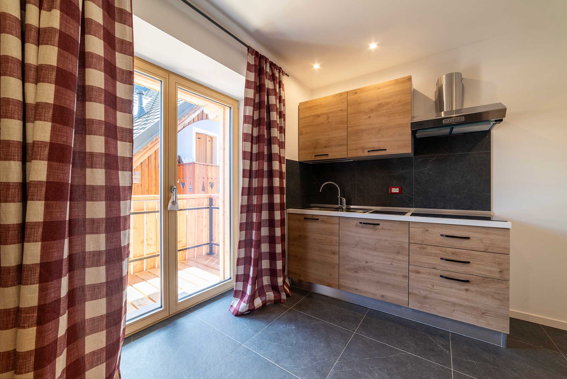 Con pareti in legno antico di baite austriache e italiane, offre una camera da letto con letto matrimoniale e un soggiorno con divano letto per altre 2 persone.