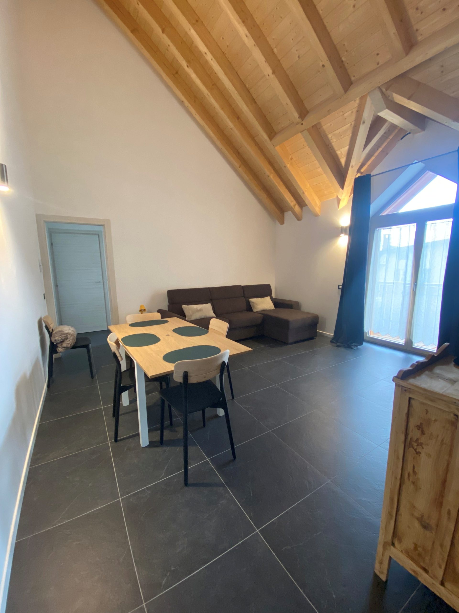 Ti presentiamo un accogliente appartamento di 49m2 situato al secondo piano con soppalco (non ancora ultimato), in grado di ospitare comodamente fino a 4 persone. Questo spazio è facilmente accessibile grazie a un comodo ascensore e presenta un affascinante tetto in legno di larice, che aggiunge un tocco naturale e caldo all’ambiente.