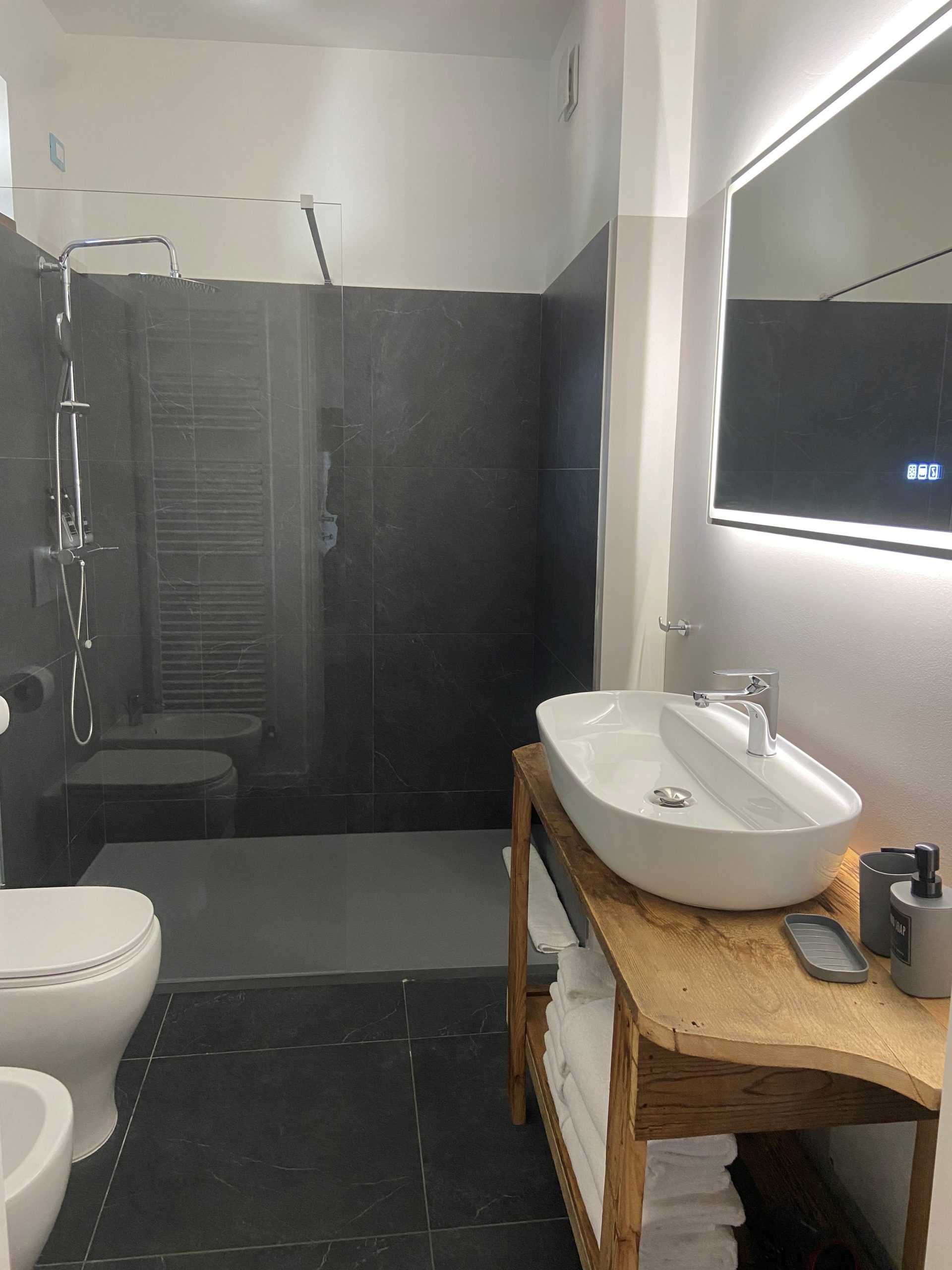 Il bagno è un vero punto forte, con uno specchio antiappannamento e un sistema Bluetooth integrato, che ti consente di ascoltare la tua musica preferita mentre ti prepari. La doccia walk-in offre un’esperienza di benessere moderna e rilassante.
