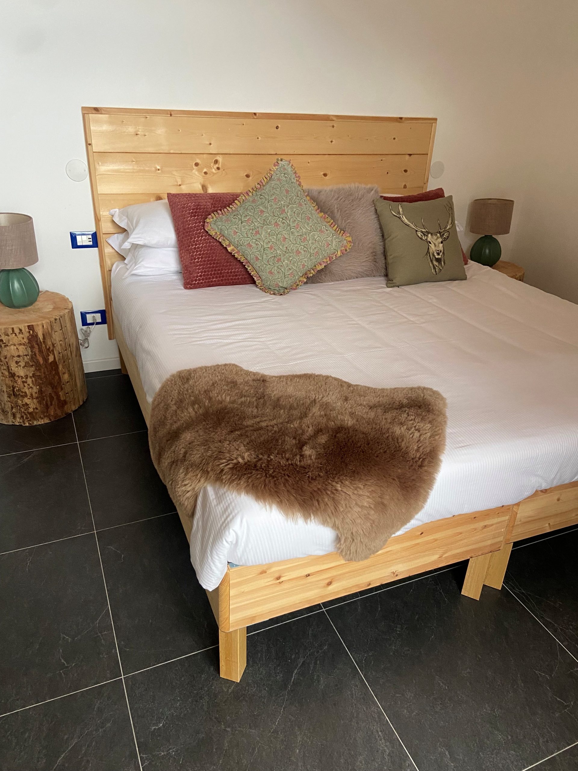 Nella camera da letto, il legno di cirmolo crea un’atmosfera accogliente e rilassante, ideale per un sonno ristoratore. L’arredamento è curato nei minimi dettagli, offrendo un ambiente e invitante. Infine, l’appartamento dispone di un balcone, perfetto per goderti momenti di tranquillità all’aria aperta e ammirare il panorama circostante.