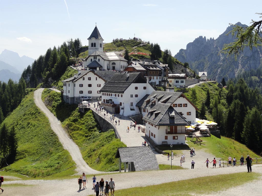 Una delle mete più iconiche della zona, con il suo suggestivo borgo alpino e il santuario. Raggiungibile in cabinovia, offre viste panoramiche e piste da sci in inverno.